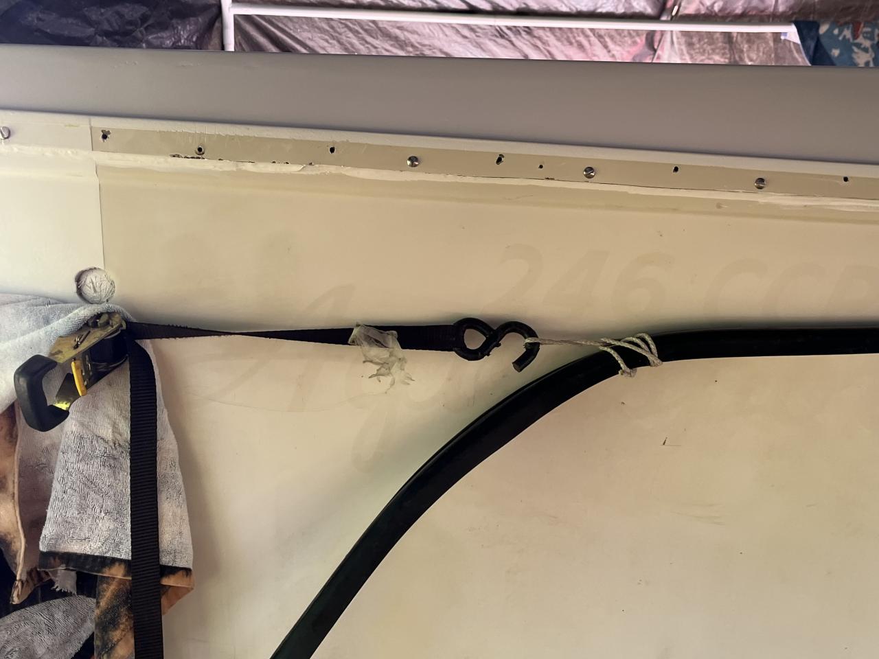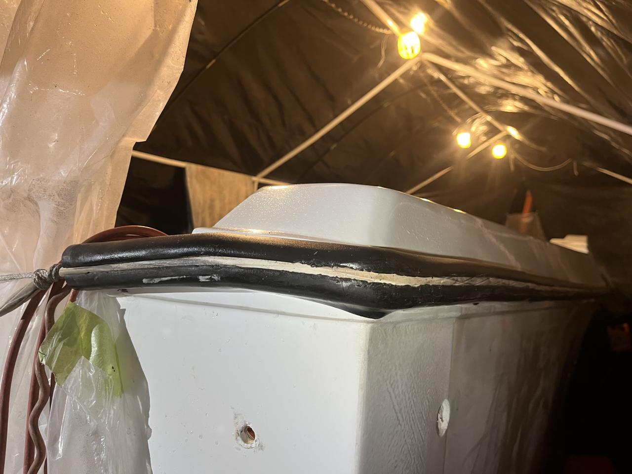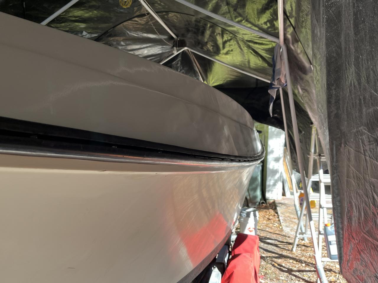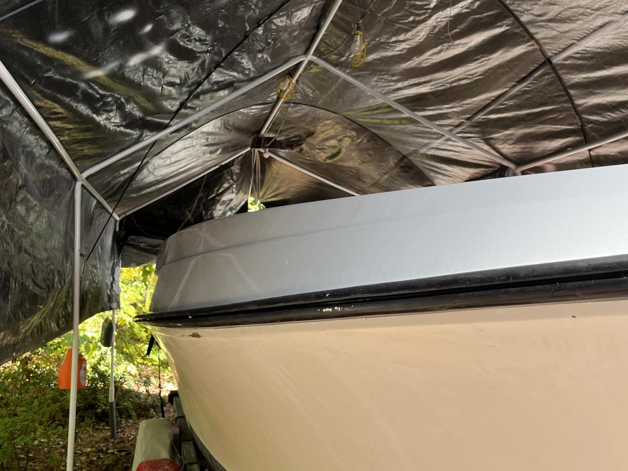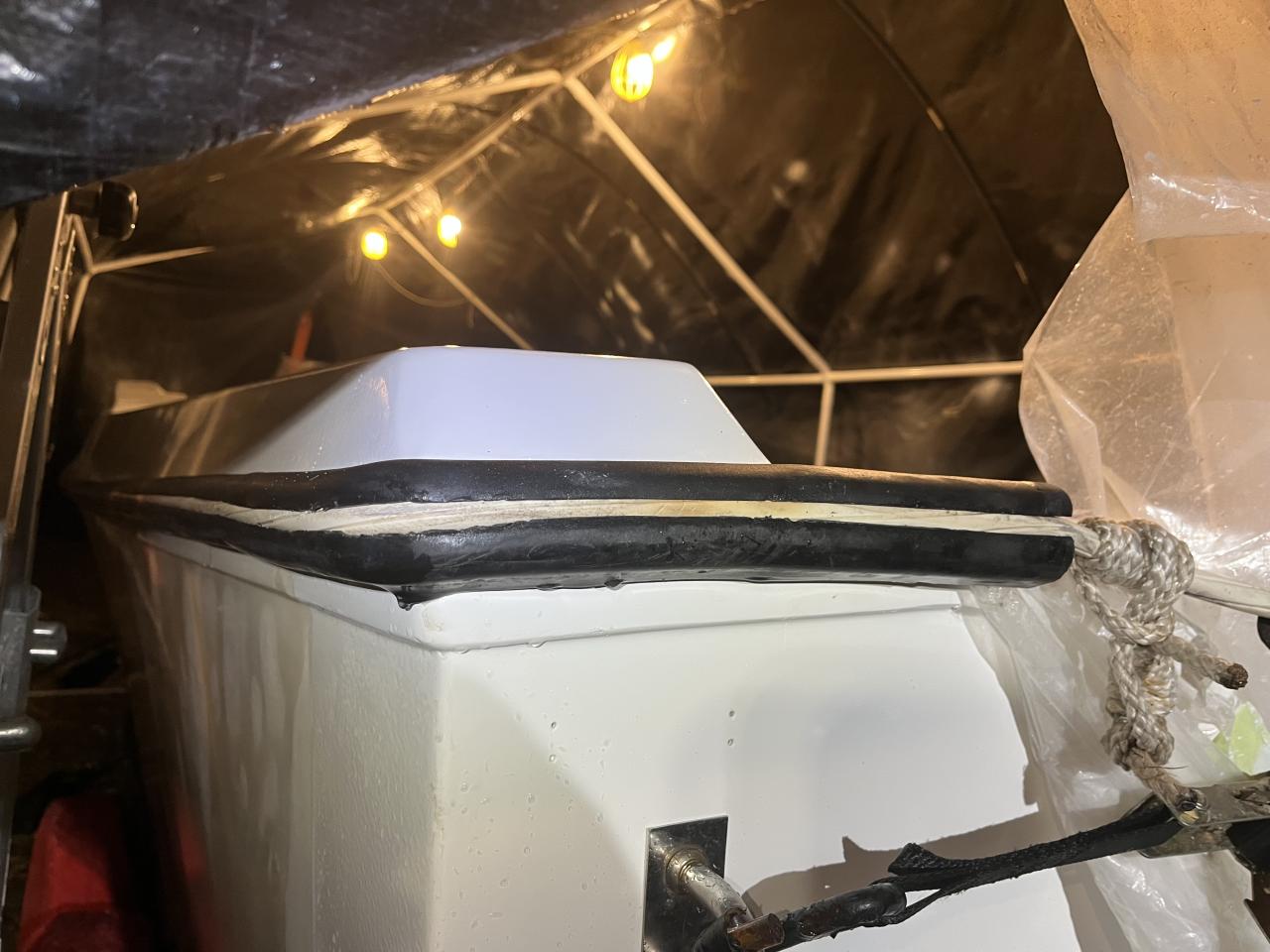 would not easily go in. I tried everything I could think of. The problem was the old rub rail was too stiff and brittle. Basically it went in a flat screwdriver tip width at a time. Took me hours and I am sore from using my arms to fight it. Ugh. Not fun. But at least it’s in. I have a section of green rub rail from my 200 CCP that I will use to go across the transom cap. A little nostalgia!