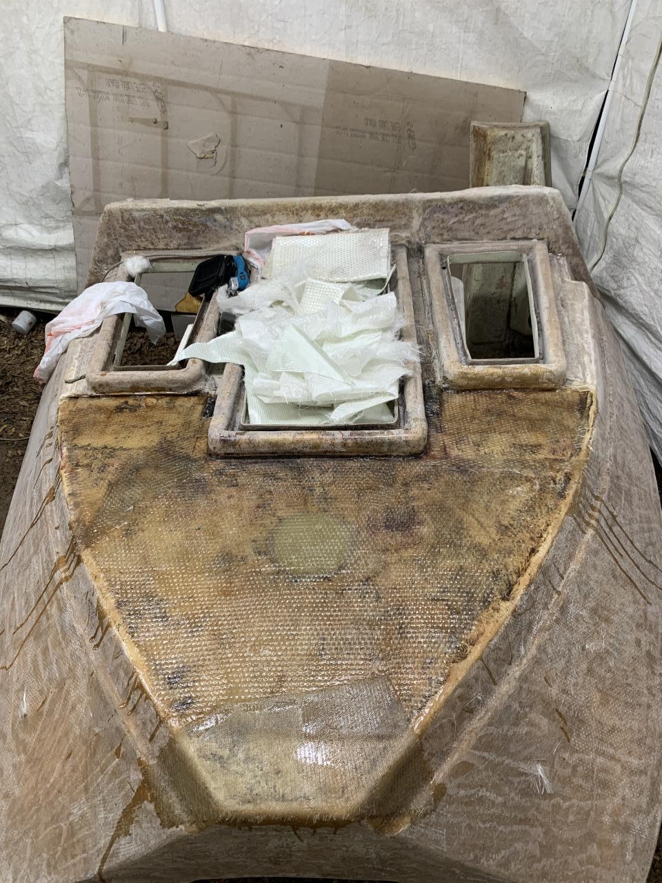 « Last post by Ulysses485 on November 07, 2025, 11:48:14 PM »Filled in the big access hole in the casting deck with two (2) layers of 1708 and built back the "top layer" of the deck with a layer of 3610. 3/8'' coring (not photographed yet) has been cut and is ready to be bonded and laminated with glass.