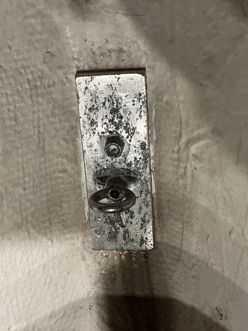 Took a stainless backing plate and curved it to make a nice contoured plate for the bow. Then I took 1/2” aluminum to make a bomber backing plate. It is partially pitted because it was the original backing plate for the outboard bracket when it was on the prior boat. Overkill but I use what I have. Sealed it all with 5200.