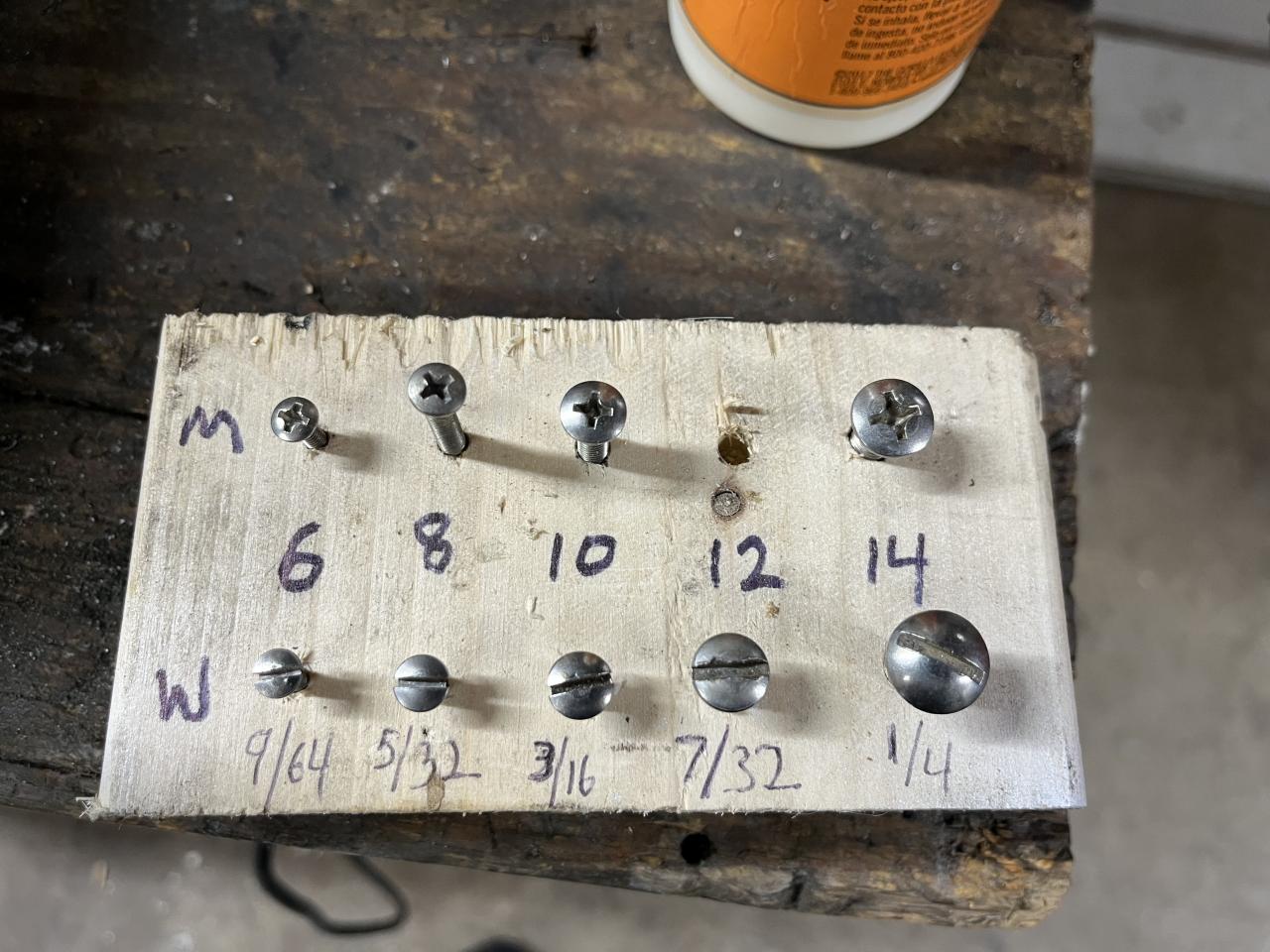 A long time ago I decided that ALL VISIBLE fasteners will be slotted oval headed screws. I didn’t think a Phillips in teak was the look I wanted. Little did I know that machine threaded slotted ovals head screws are still readily available however wood screws are not. I had to special order online to get them. Special thanks to Bolt Depot for having what I need and getting it to me fast and easy. So to help out with proper fastener size selection I created this block so I have a sample size to choose from. Yes, I am aware that not all fasteners pictured are slotted ovals… it’s more just to catalog for me what is available so I can confidently commit to a size. Teak is tricky in that you cannot just screw into it. You have to pre drill all holes to avoid splitting or to even get the screw to go in without stripping the head off. It’s a very hard wood. So with that said you have to commit to fastener size so you can drill the proper size holes and counter sinks. For example, screwing a slat to a larger board… the slat hole has to be counter sunk and larger than the screw so the threads don’t catch it while the board hole has to be smaller than the threads but large enough to let the screw penetrate without splitting. Every screw requires two different sized drill bits and a counter sink to be installed properly. Simple right? Takes planning especially when I don’t want to make a single mistake with teak. Re-do’s will be tragic especially when I start working with the 50 year old Burmese teak I have for later in the project. I’m just getting warmed up repurposing scraps for now. I do not want to be drilling into finished glossy teak either and risk damaging the finish so all holes have to be pre drilled before varnishing. I just wanted to point out what has to go into fastening teak. I learned the hard way so you won’t have to.