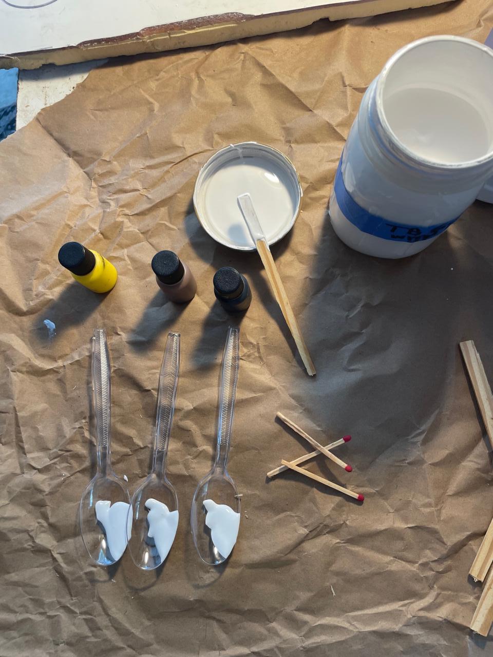 My color matching setup. Add a drop of pigment to a spoonful of gel coat, mix, add as needed to a cup of gel coat, dab onto a scrap of hull, then repeat as needed. A 2:2:1 ratio of brown/yellow/black seemed to approach the factory color, but there is a catch to this – when one sands the boat hull even lightly, a brownish “patina” is removed, yielding a lighter color. That didn’t matter for this part of the project since I was overcoating everything, patching the hull would be a different matter.