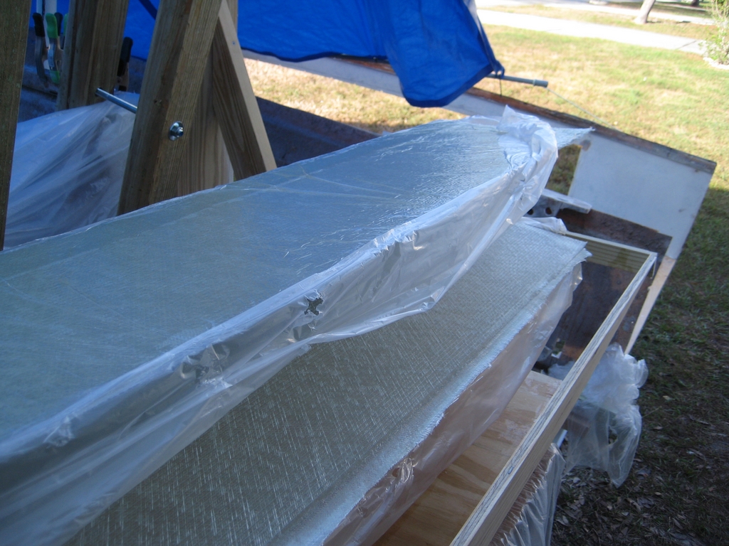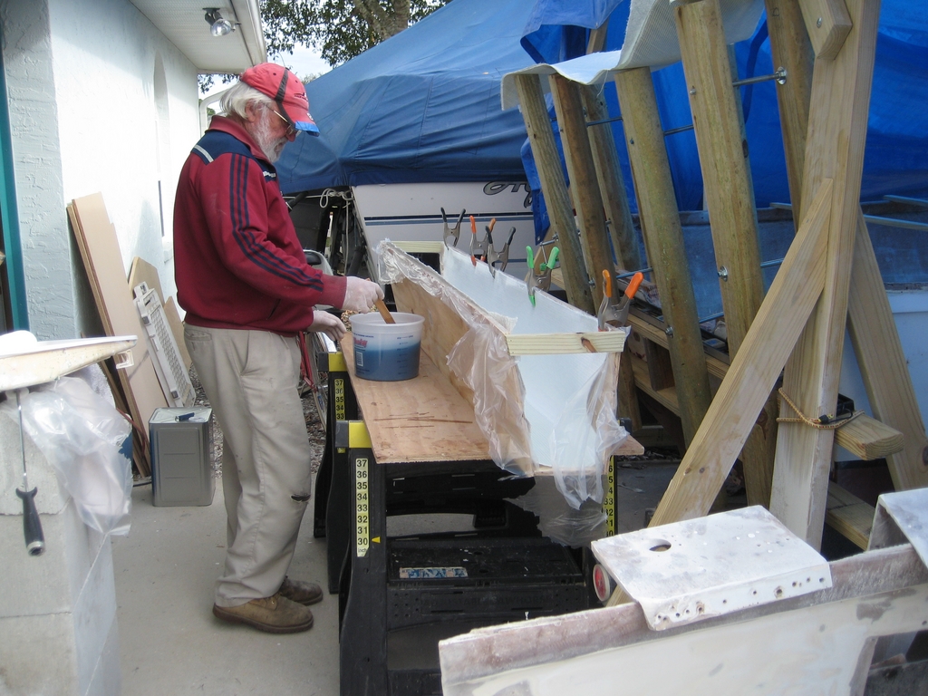 At 1/16 thick the fitting should go fast. I wondered about the plan for fitting because it appears as though the height in the stern is considerably less then in the bow and you laid up those nice even stringers. Will you foam once glassed in?