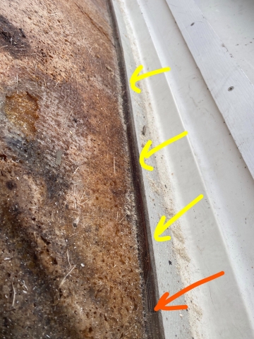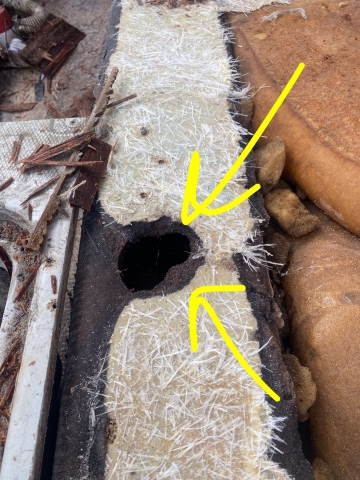 The bulge looks to be in the liner mold. On the Starboard side the trough is in the way I think?