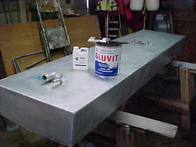 Then, I coated the tank with two coats of Glu-Vit epoxy by marine tex. It seemed to do a great job penetrating the few pits I had in the tank. I am very confident that the tank will last for another 20 years.