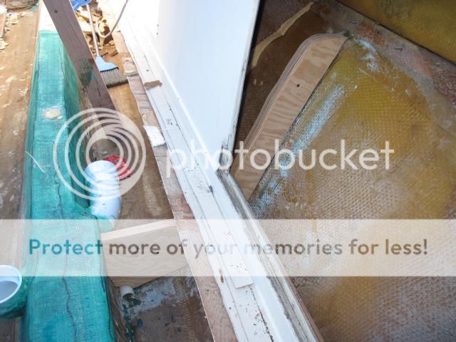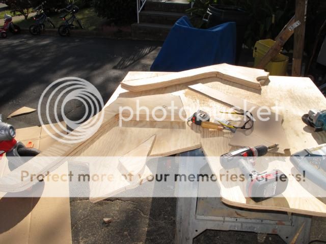 I transfered it to plywood and cut the first one, then I dry fit it, made notes as to tweaks, and transferred those tweaks to the 2nd layer. I decided to go with 2 layers of 3/4 ply as it seemed like alot to ask from one layer. I made a half round cutout at the bottom for a piece of PVC to act as a gutter drain to let any water pass should any get in there.