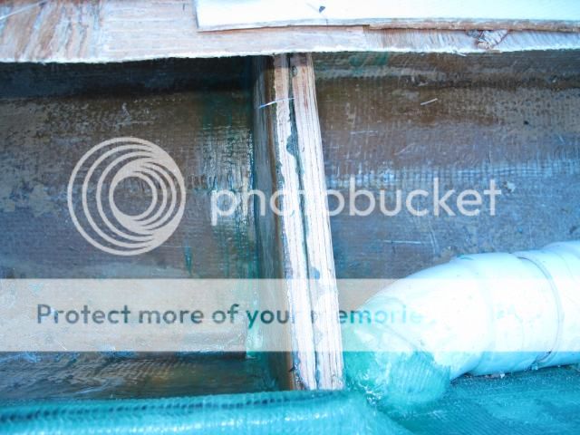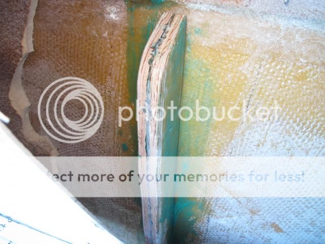 I took the 2 halves, glassed 1.5 oz chpped strand between them and screwed them together. I let them set up for a few hours. Then I mixed West systems 404 powder into some resin and made a paste. 404 is like cabosil except is is much harder, stronger and tougher to sand. It is a good structural filler and not a good fairing compound because it is tough to sand. I basically spread it over a marked line and set the bulkead into it and cleaned up the edges. It looks messy and it is a bit as the pictures do not do justice to how odd of a space this was to work in. It will glass just fine. I also think it was a wise move and worth the effort. The play and movement that the gunnels have was very obvious when I had the bulkheads dry fit in place and I tried to move the gunwale in and out. There was movment enough to justify my actions.
