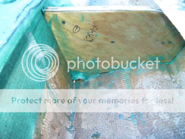 Tomorrow I will drill 2 alignment holes, un screw them from each other, glass a piece of 1.5 oz chopped strand between them, screw them back together, and resin the remaining surfaces and edges and let it set for a day. Then I wil install them completely encapsulating them and glassing them to the hull with biaxial.