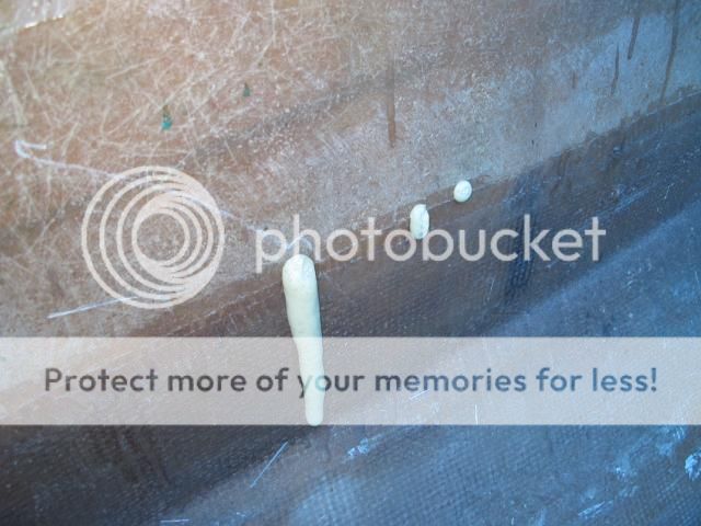 Here is a phot I promised about something I mentioned earlier when I was pouring foam.  These foam dribbles actually bled through the fiberglass. They are not spills.